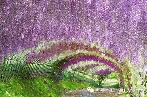 竞相开放的紫藤花使得隧道格外绚丽和神秘,这是日本旅游必到景点之一。带好相机,因为你一定会不由自主地猛按快门键。